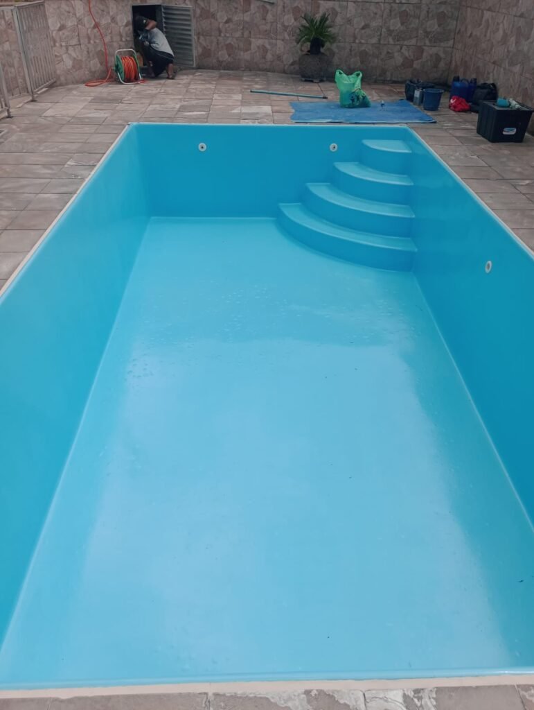 Nosso serviço de pintura de piscina de fibra renova a cor e protege a estrutura contra desgastes.